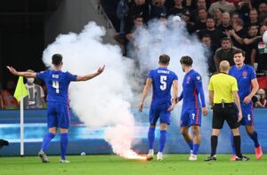 W pewnym momencie obok kilku angielskich piłkarzy wylądowała nawet świeca dymna. Zdjęcie z tej sytuacji natychmiast wykorzystano w telewizji BT Sport w dość humorystyczny sposób: